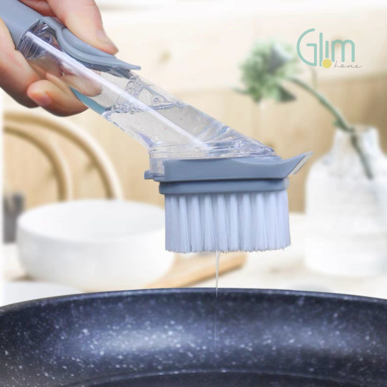 Cepillo dispensador de jabón ideal para lavar loza, ollas y utensilios. Diseño práctico, recargable y fácil de usar. Limpieza eficiente y sin desperdicio.