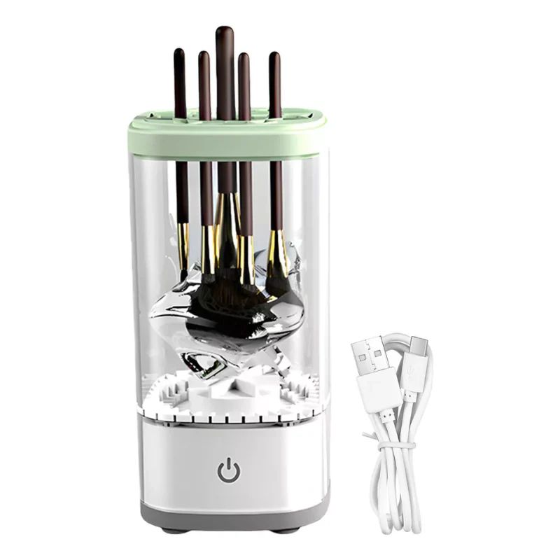 Limpiador de brochas recargable que lava y seca en minutos. Ideal para mantener tus brochas de maquillaje limpias, higiénicas y listas para usar.