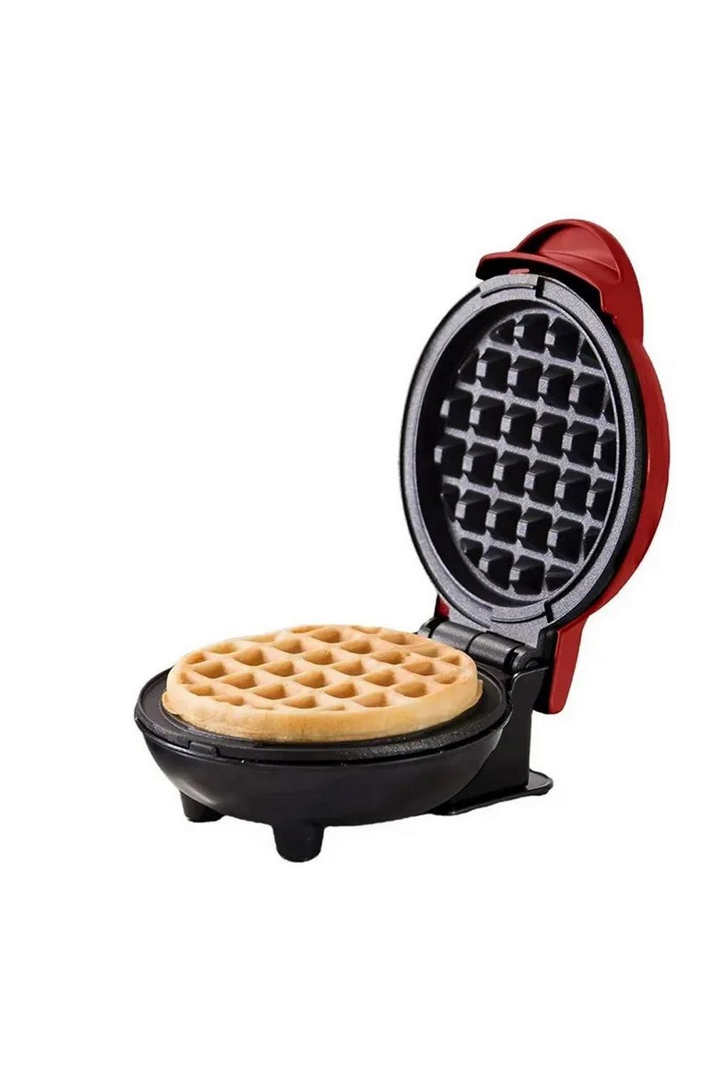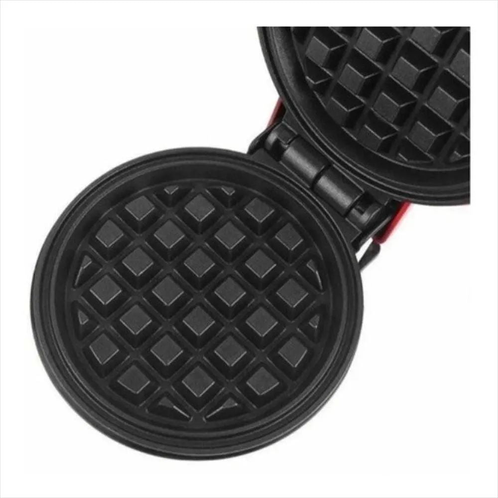 Mini waflera eléctrica portátil con superficie antiadherente. Ideal para preparar waffles rápidos en casa. Compacta, práctica y perfecta para espacios pequeños.